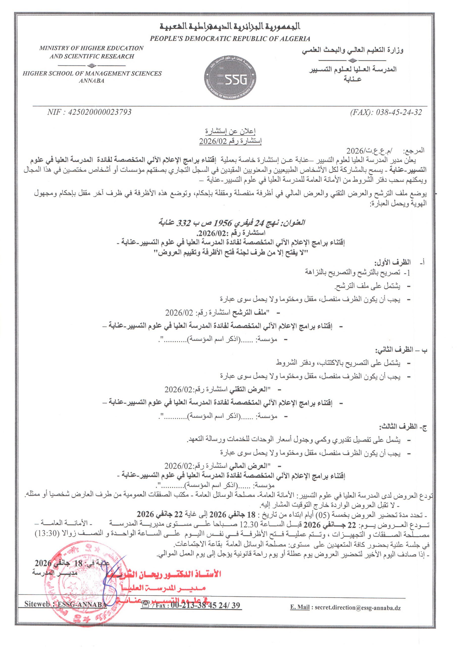 - إعلان عن إستشارة رقم 2026/02