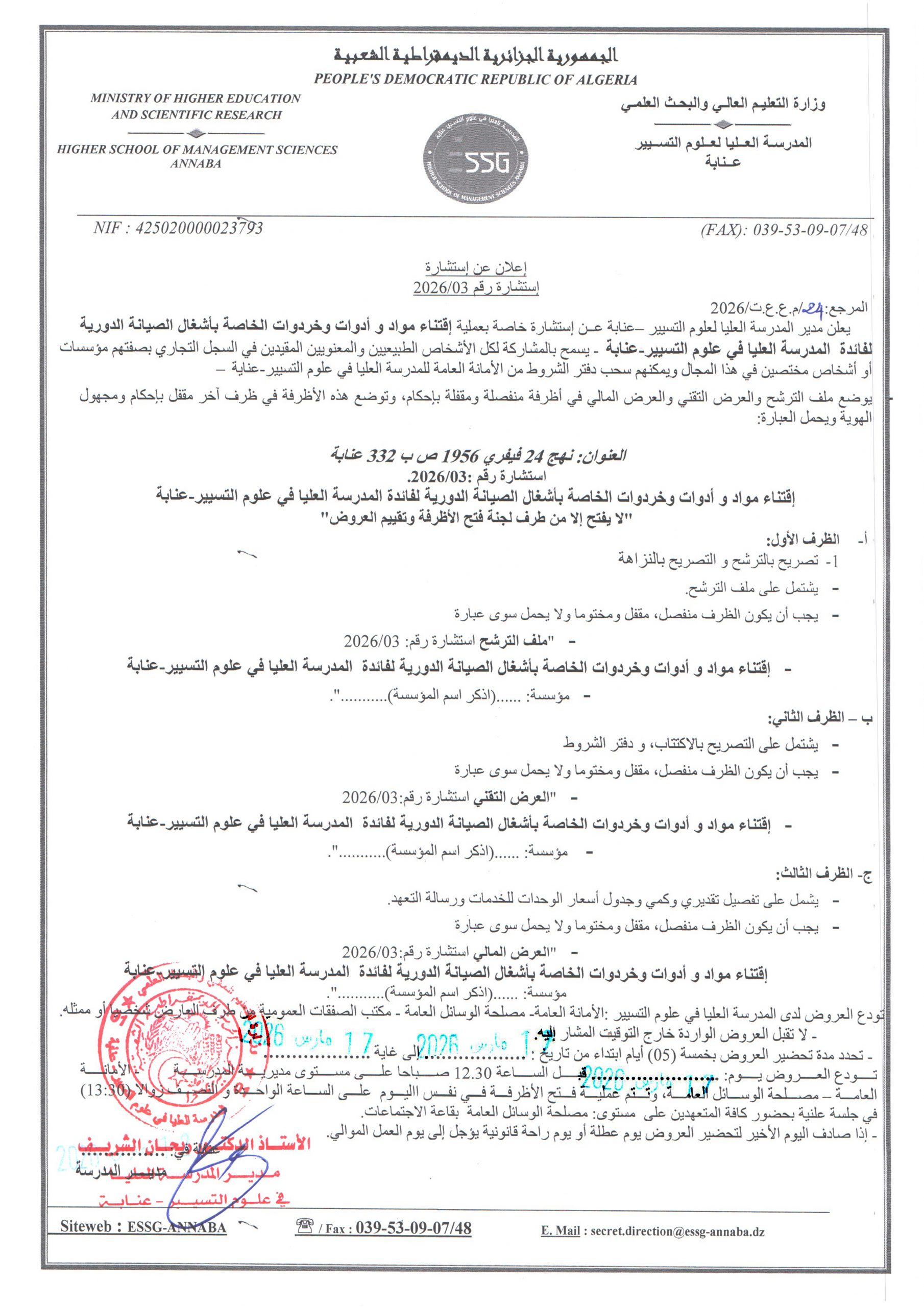 - إعلان عن إستشارة رقم 2026/03