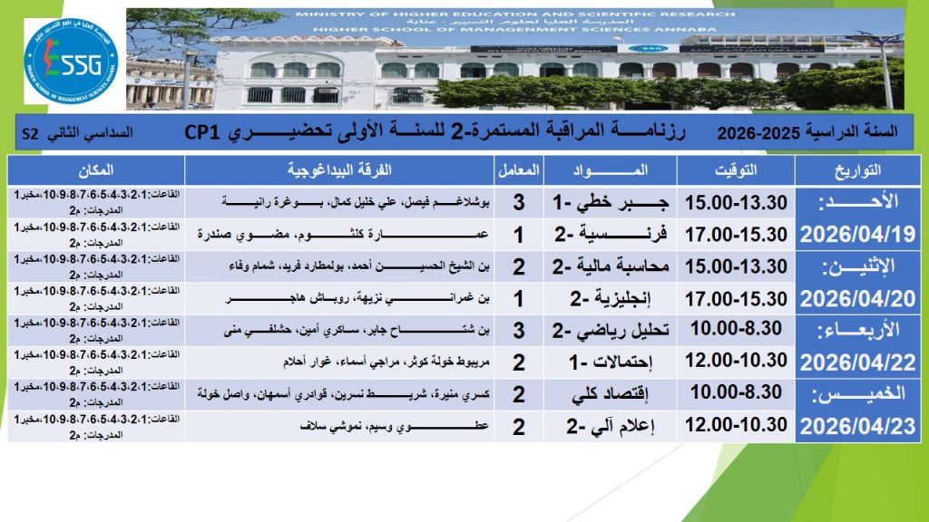 رزنامة المراقبة المستمرة -2 للسنة الأولى والثانية تحضيري 2025-2026