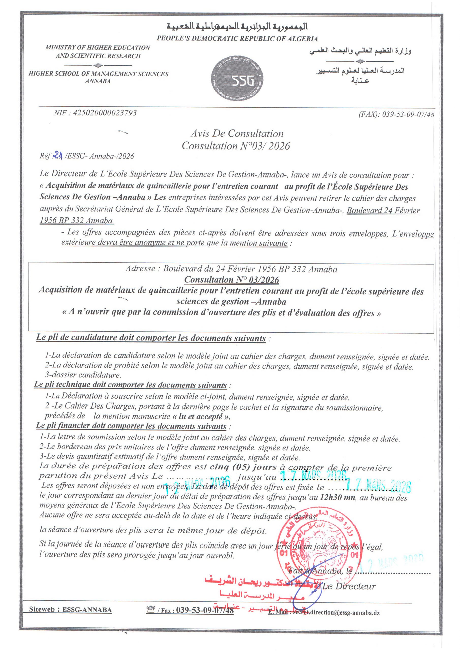 - Avis de consultation N° 03/2024